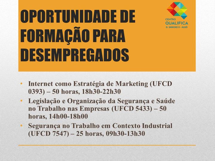 PS: Os empregados e desempregados há menos de um ano também poderão frequentar estas oportunidades de formação, desde que detenham o 9º ano de escolaridade.